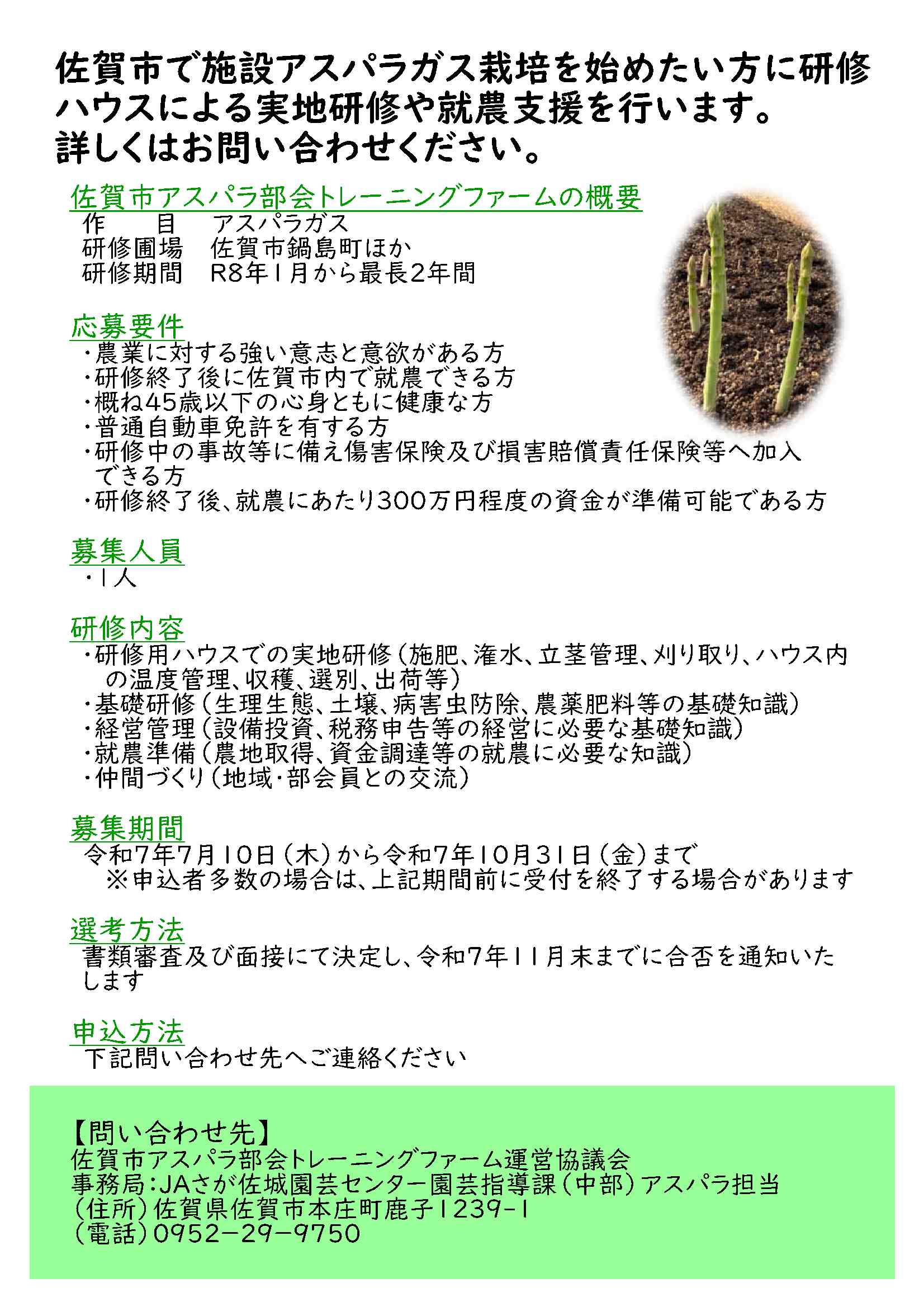 佐賀市で施設アスパラガス栽培を始めたい方を対象に、