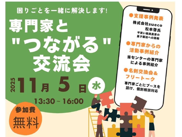 また、センターで登録されている専門家による支援事例の紹介や交流会も開催します。