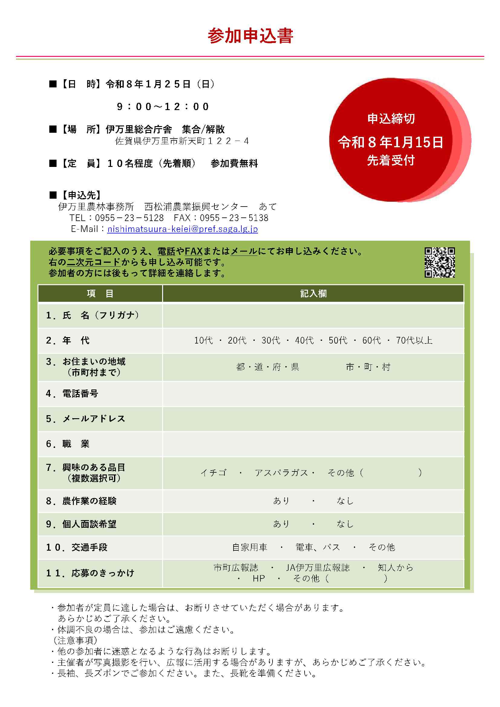 【問合せ】事務局 伊万里農林事務所西松浦農業振興センター