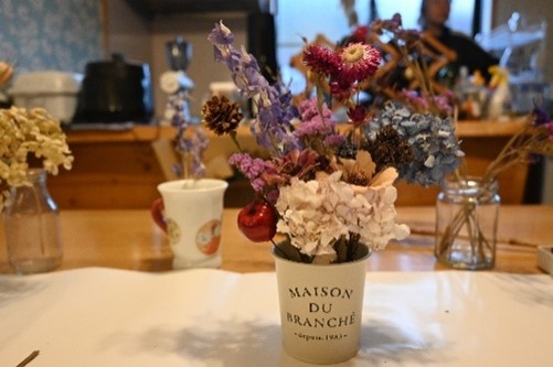 1年間を通して季節ならではの作風があり、用いるお花も様々なので、訪れるたびに体験したくなるオススメのアレンジメントです!体験をとおし、大切な思い出や記念になる、世界に一つだけのドライフラワーを得ることができます。