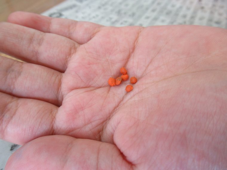 野菜の種を手にとってみると・・・「こんなに小さいの。」「大きく育つかな?」など、児童は、小さな種を大事に育てると大きくておいしい野菜ができることに感心していました。