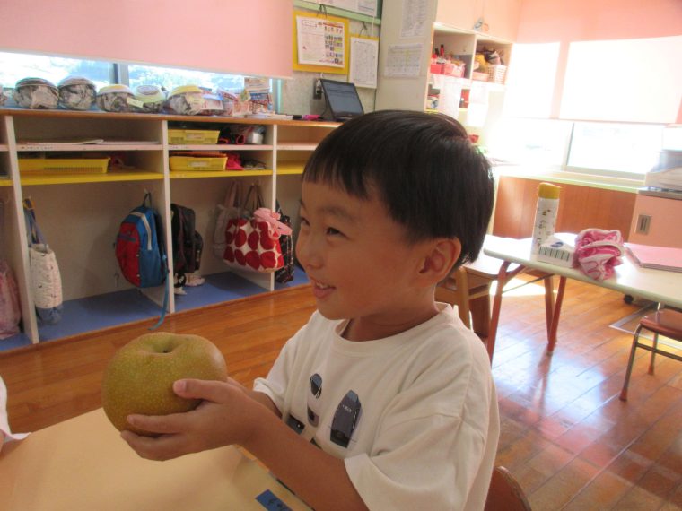 梨や野菜クイズにも楽しく参加し、モグモグタイムは一番の笑顔でした(笑)