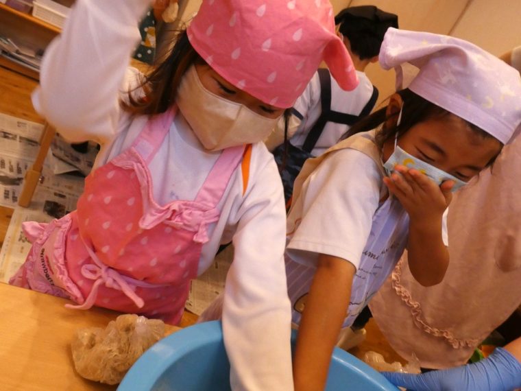 柔らかくて気持ちのいい感触に、子どもたちはにこにこ笑顔。