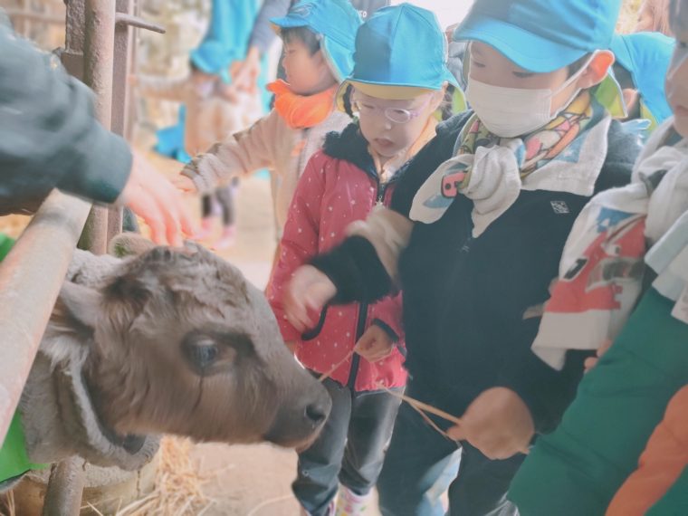 園に戻ってからは、”いのちをいただく”という少し難しい絵本を読み、今日出会った牛さんから自分たちの栄養となる食物(お肉)や飲み物(牛乳)を分けてもらっていることを知り、命の大切さにも触れた1日となりました。また、そんな牛さんたちは毎日早朝から欠かすことなくお世話なさっている酪農家の皆さんへの感謝の気持ちも持てるいいきっかけになったようです。