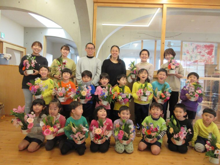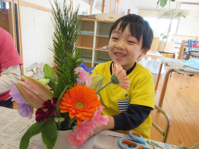 色とりどりの、ひとりひとり違ったフラワーアレンジメントが完成し、みんな嬉しそうでした。