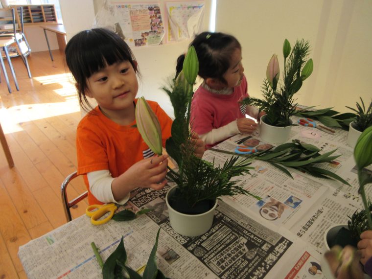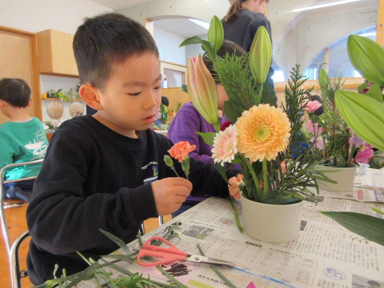 色とりどりの、ひとりひとり違ったフラワーアレンジメントが完成し、みんな嬉しそうでした。