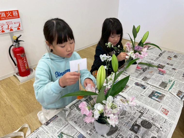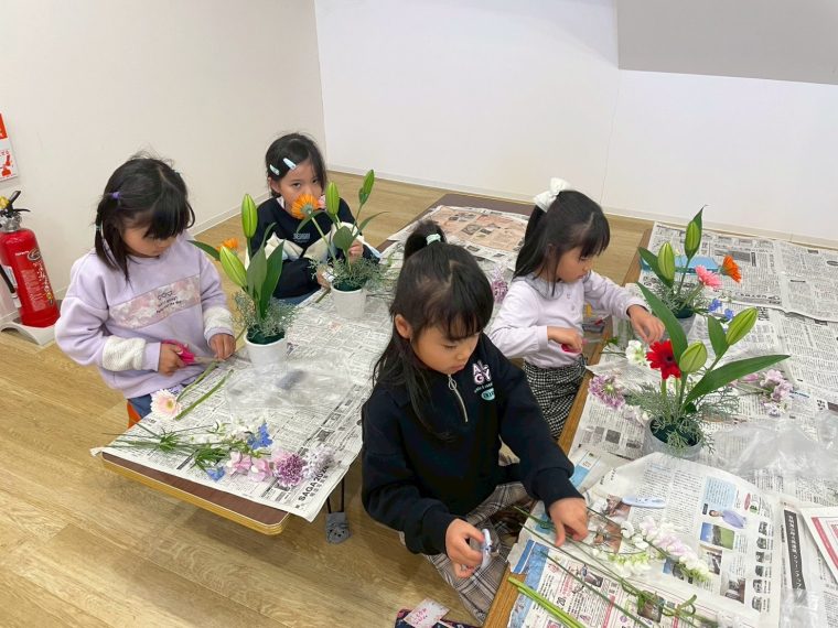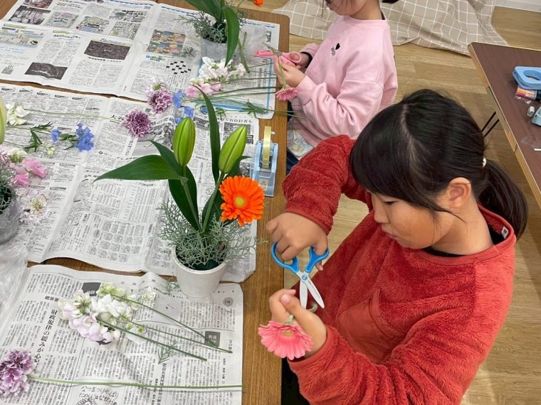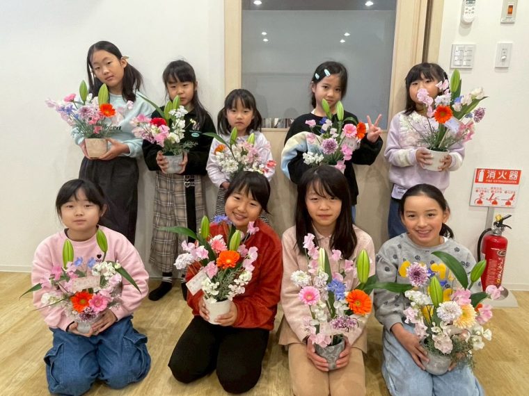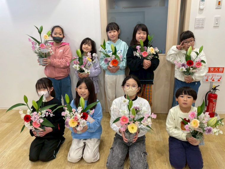 できあがったフラワーアレンジメントは内容は同じ種類の花でも、こども達それぞれの個性が出ていてとても素敵なものができあがりました!