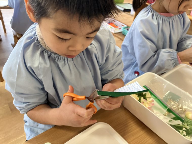 「みんなの成長をお祝いする卒園式に素敵な花🌸を添えましょう。」と明日香先生の話を聞いてやる気満々!