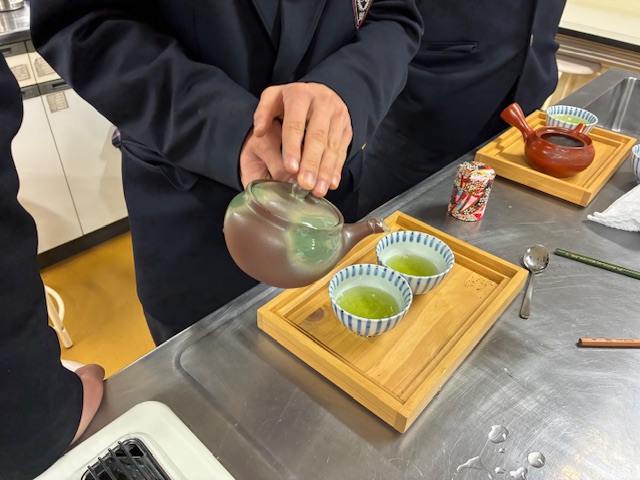 講師の永尾先生にいれていただいたお茶を飲みながら、お茶の歴史や茶葉などについてお話を聞きました。